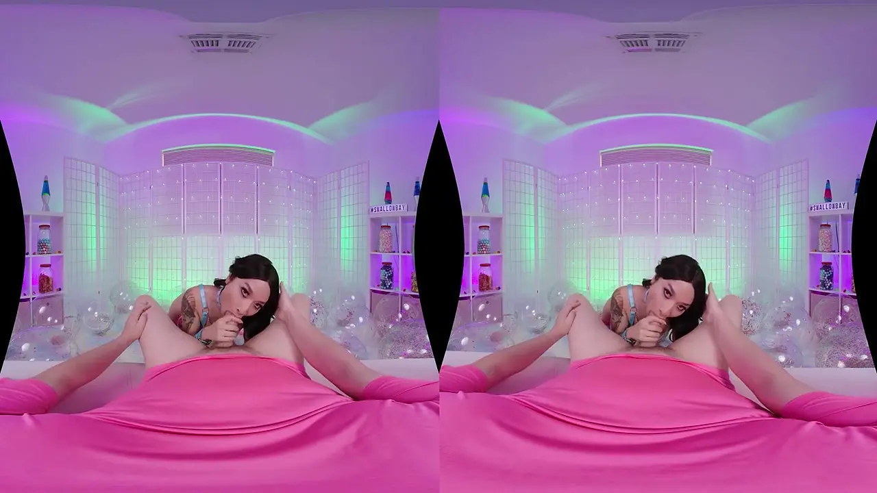 Virtual reality scene with a petite Asian girl giving a sloppy blowjob to my huge rod. She deepthroats me and gags while I control her head. Ends with her swallowing my load in this reality scene.